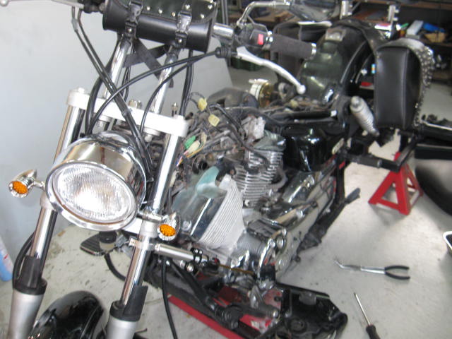 作業の合間合間でコツコツ修理してたドラッグスター250トライク完成しました、スポーク&リム交換、インナーチュウブ交換、インシュレーター交換、ハンドルダンパー取り付け、ブレーキOH,リアフェンダーステー作成、ホイール塗装、ウインカーリレー交換、その他もろもろ・・・・さすがに一ヶ月ほどかかりました。明日オーナーさんが引き取りに来られます喜んでもらえば良いですけど。