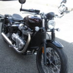 トライアンフのアメリカンクルーザー、ボバー、オイル交換&点検に来られました、乗りやすくスタイルもバッグン長距離…